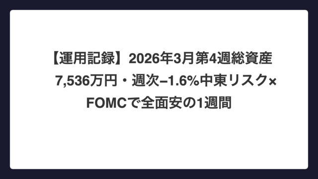 【運用記録】2026年3月第4週総資産7,536万円・週次−1.6%中東リスク×FOMCで全面安の1週間