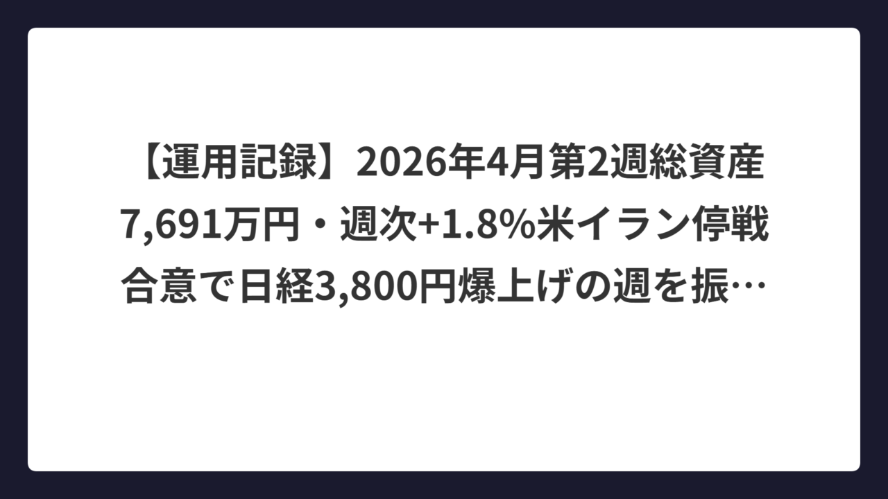 【運用記録】2026年4月第2週|総資産7,691万円・週次+1.8%|米イラン停戦合意で日経3,800円爆上げの週を振り返る | StockGadget